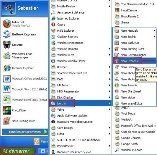 Premièrement, lancez Nero Express (démarrer, tous les programmes, Nero, Nero Express).
