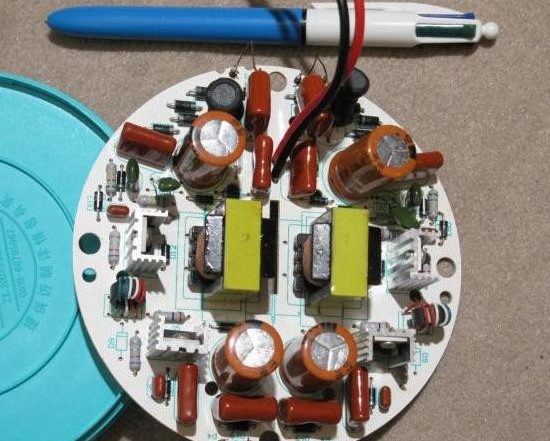 Une ampoule fluocompacte est formée d'une carte électronique qui alimente à haute fréquence le tube fluorescent. Le tube fluorescent a